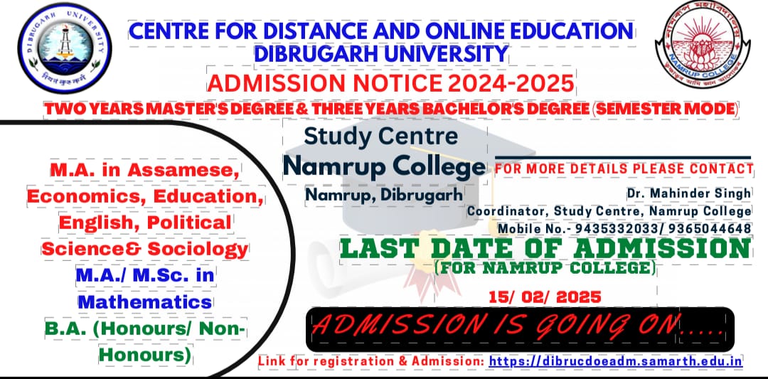 DIBRUGARH UNIVERSITY OPEN AND DISTANCE LEARNING, NAMRUP COLLEGE STUDY CENTRE